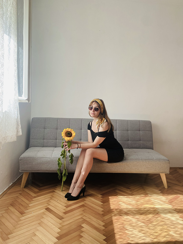 Summer is for sunshine and flowers! As autumn slowly takes over, the summer aesthetic seems so bittersweet nostalgic. Memories of carefree long days, warm colors, the sea and gelato linger in my mind no matter how much I can't let go of them. Also, the thought of my sunny little apartment in the old part of Split is inevitable. With a sunflower on the window, I spent the happiest moments of every summer in that apartment. Aesthetically speaking, a little black dress can be perfectly integrated into a summer look, softening it with a cheerful yellow scarf tied in the hair. I like to connect my personal style with the space I stay in, so for the first published series of photos, the atmosphere of the apartment with sunflowers played a key role in combining elegance with Mediterranean charm.